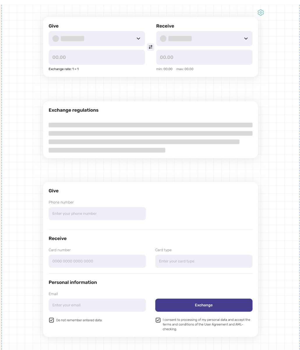 **Exchange page builder** is a visual tool in the Lara-Script admin panel designed to configure the structure and appearance of the exchange request creation page without the need to edit source code.