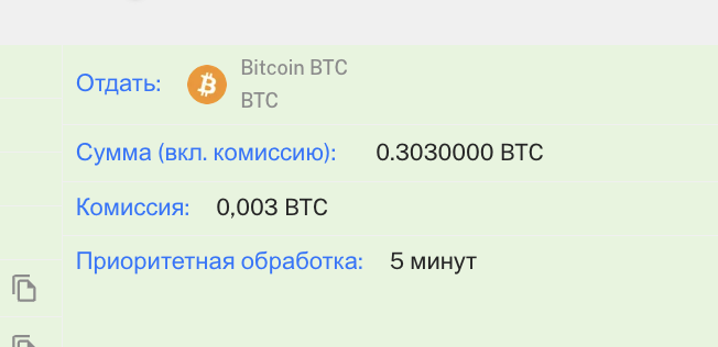 👉 За приоритетную обработку взимается фиксированная комиссия 5 единиц, заявки обрабатываются в течении 10и минут.