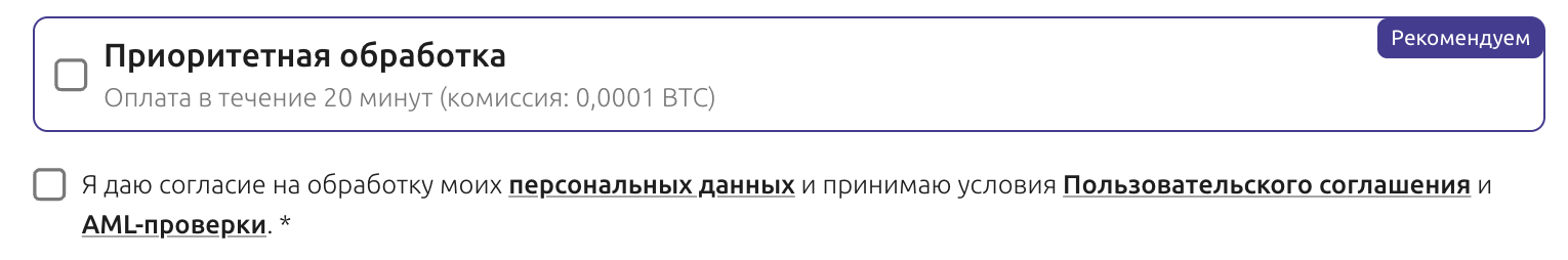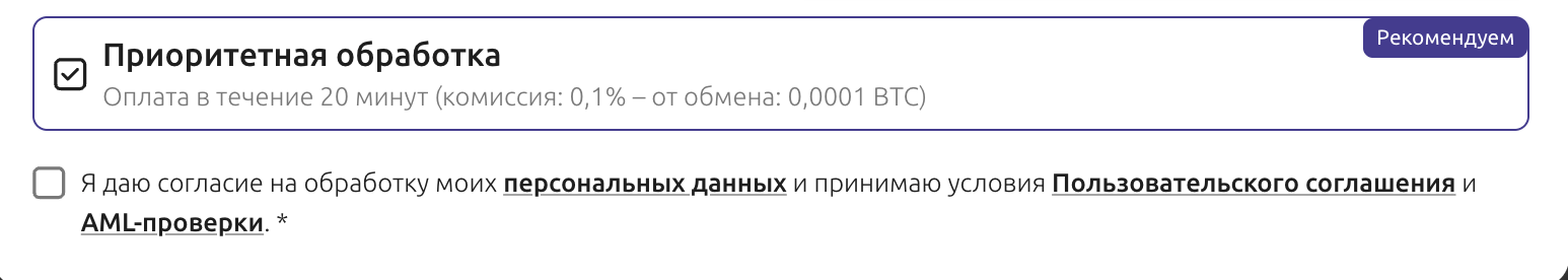 * Комиссия за приоритет добавляется к основной сумме оплаты для обмена